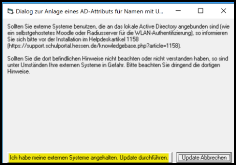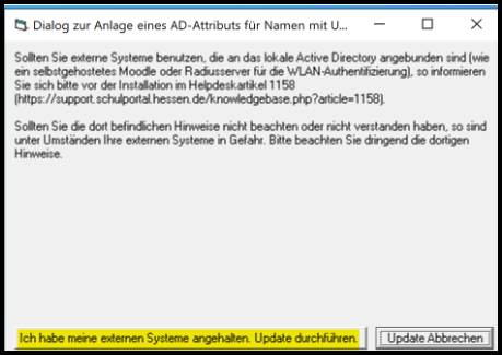 Beachten Sie bitte das Hinweisfenster und bestätigen sie dieses mit Klick auf "Ja": - Nur als "Schuladmin" (Als Administrator direkt bei 3. weitermachen):