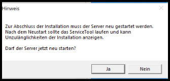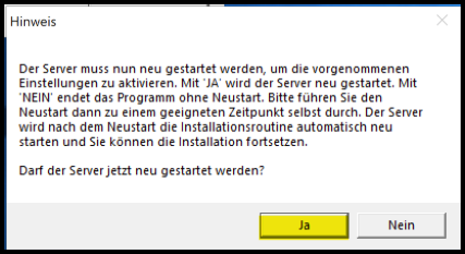 Lesen Sie diese bitte aufmerksam durch: - Nach dem Schließen des Browserfensters werden Sie zu einem Neustart des Servers aufgefordert. Klicken Sie auf "Ja":