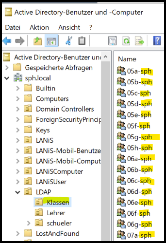 Sollten Sie in das Feld das Suffix "-sph" eintragen, so sieht die angelegte Struktur im AD später wie folgt aus: - Wenn Sie keine externen Systeme angeschlossen haben, können Sie die folgende Anfrage mit Klick auf "Ich habe meine externen Systeme angehalten. Update durchführen" beantworten.